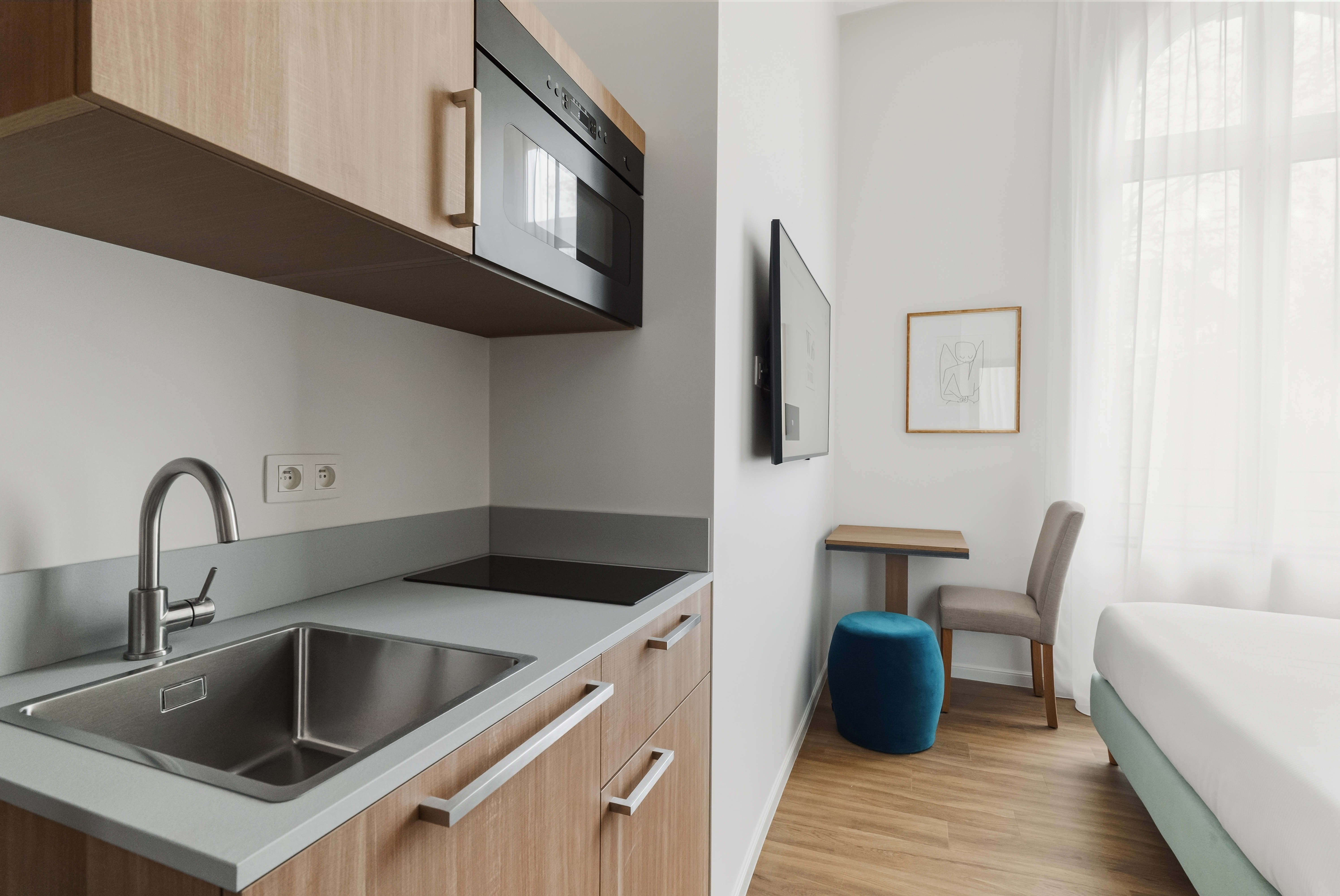 The Junior Studio at W16 Aparthotel, located on the 1st floor, offers a bright and well-organised living space designed for convenient stays in Brussels. Easily accessible and thoughtfully arranged, this studio is well suited to guests looking for a practical aparthotel option with a refined atmosphere.