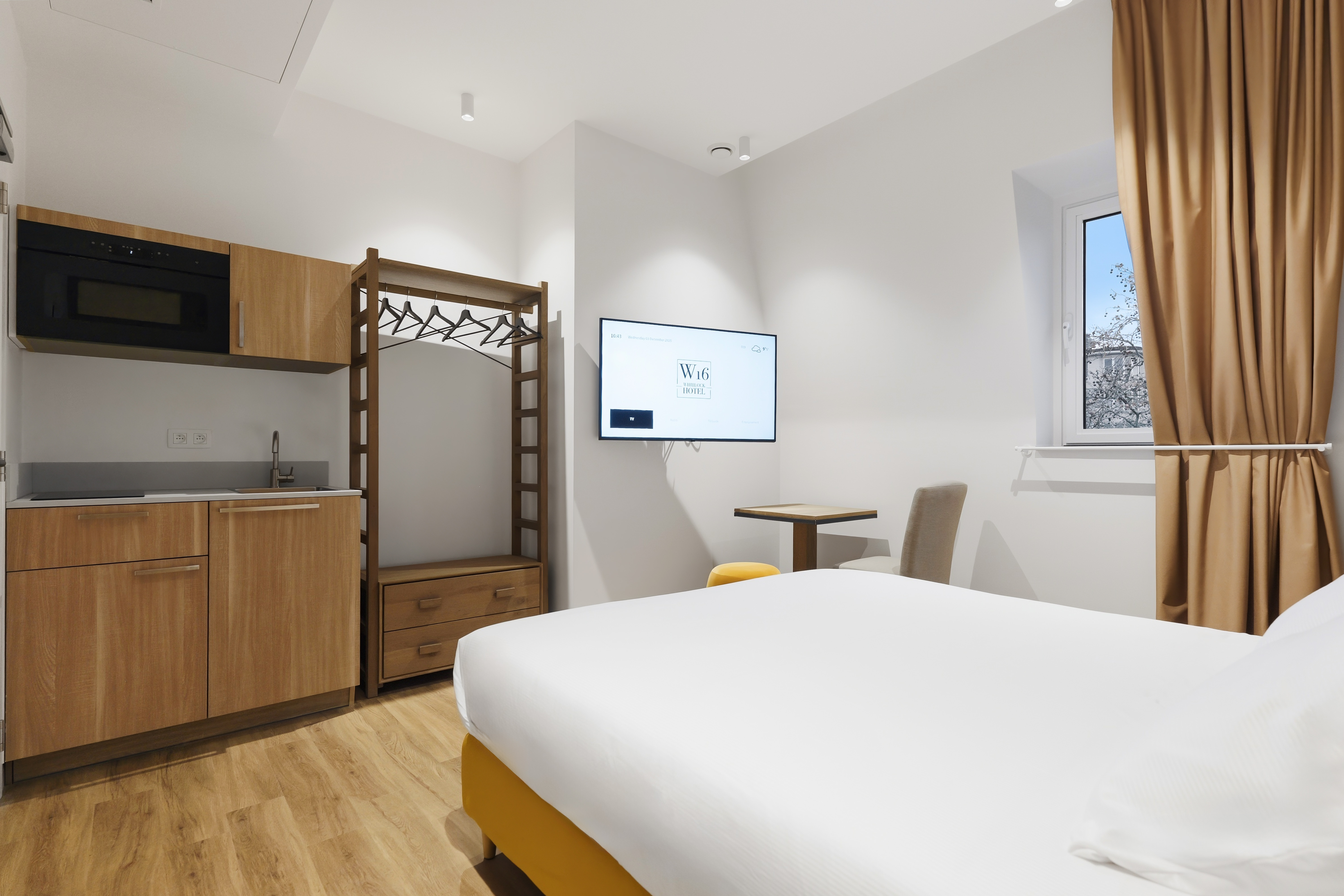 Un balcón privado añade una valiosa extensión exterior al Junior Studio del W16 , permitiendo a los huéspedes disfrutar del aire fresco y la luz natural en un entorno tranquilo. Combinado con comodidades modernas y detalles bien pensados, este estudio ofrece una experiencia de apartahotel equilibrada en Bruselas, centrada en la comodidad, la funcionalidad y la facilidad de estancia.